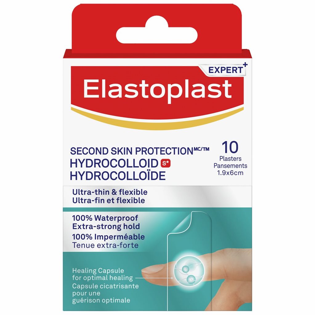 Le pansement Second Skin Protection d'Elastoplast contient des particules hydrocolloïdes qui absorbent l'exsudat de la plaie. Au contact de l'exsudat, le pansement hydrocolloïde forme un gel visqueux qui l'absorbe sans adhérer à la plaie. Ce gel peut être visible sous forme de « capsule de cicatrisation », une petite bulle blanchâtre ou opaque qui se forme à la surface de la plaie. La plaie est maintenue humide tandis que l'excès d'humidité s'évapore à travers le film semi-perméable de la surface.
